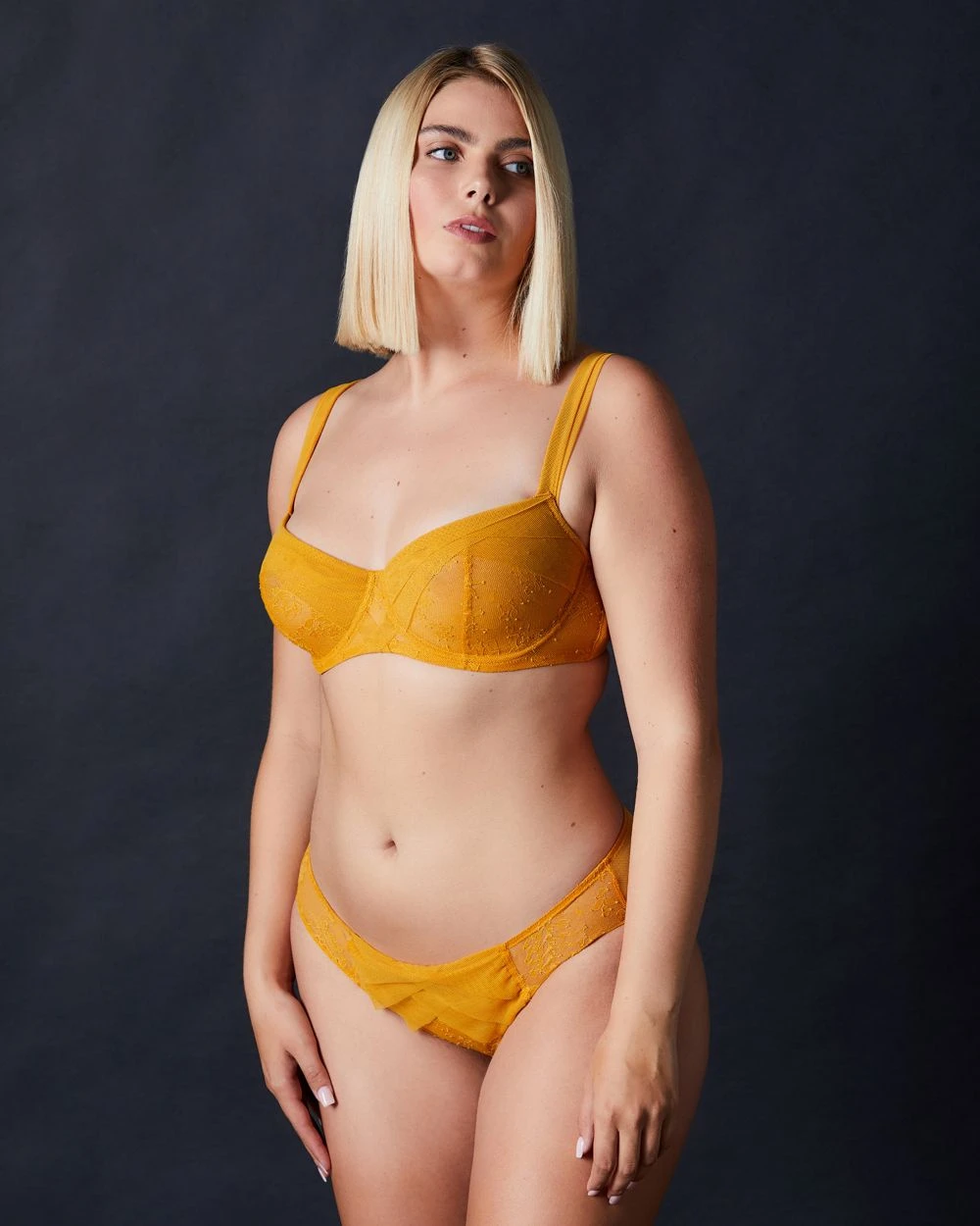 The definition of elegance, the Encens Moi Dentelle Half Cup Bra is made with exquisitely detailed floral lace cups and paired with mesh paneling to create the perfect contrasting balance. Half cups show off your assets with underwire for everyday wear, paired with thicker adjustable straps for necessary support.