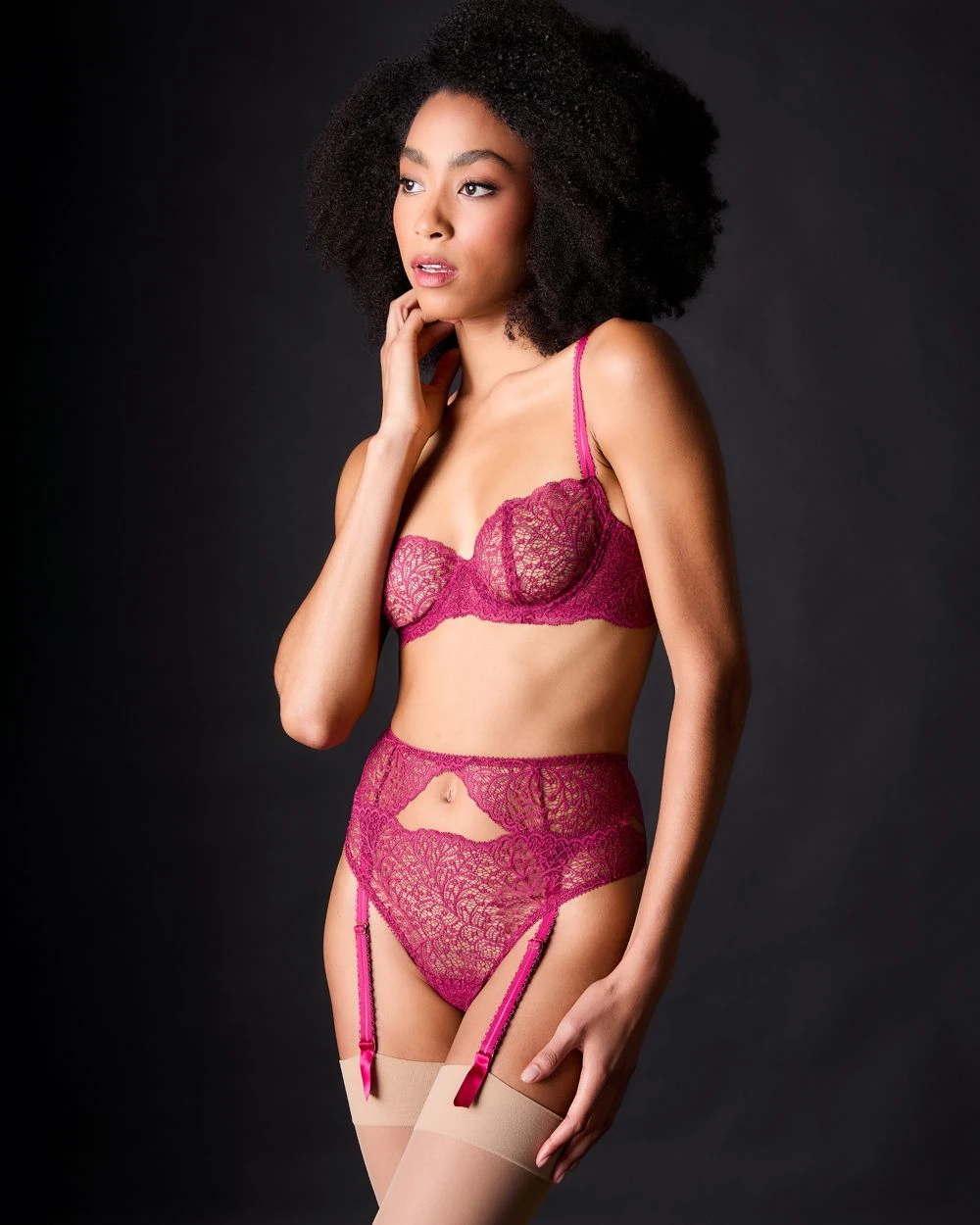 We chose this gorgeous, exclusive-to-Journelle, Italian lace for its bold graphic intrigue, and, as by design, the subtle botanical openwork looks incredible on the body.