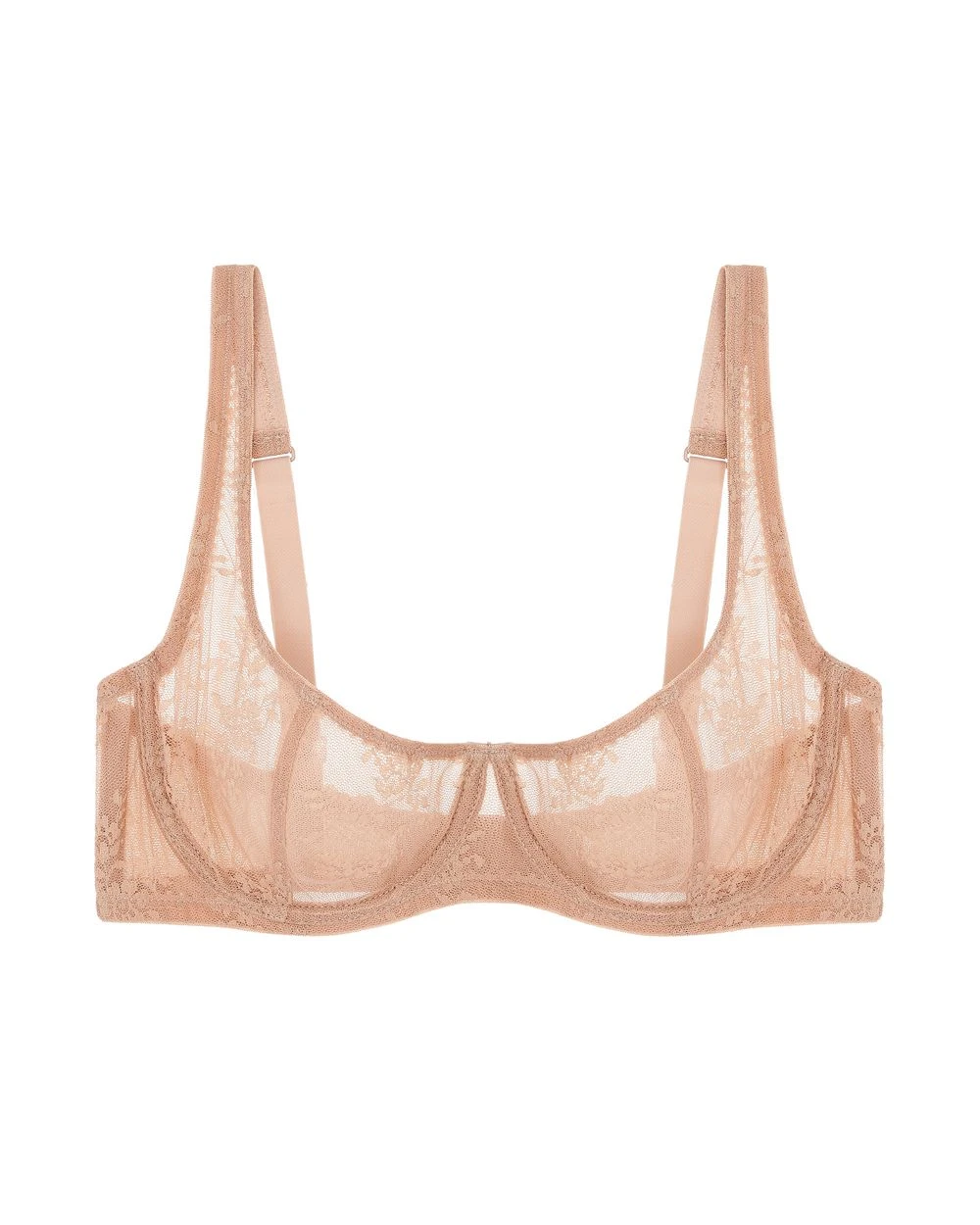 This fabulously fresh scoop neck demi silhouette is constructed from delicate botanical lace and sheer mesh. It’s as effortlessly elegant as it is stunning.