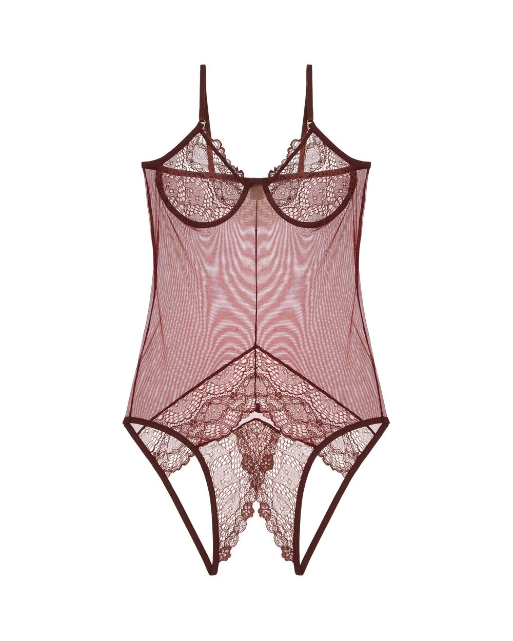 With its deco-sheer mesh, stunning cup construction, and wide-open ouvert back and bum, this stunning body speaks volumes without saying a single word.